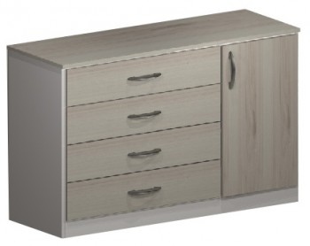 Comoda de 1350x480x870mm, con 04 cajones, 01 puerta, confeccionado MDP.
