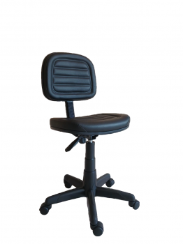 Silla Modelo Secretaria, giratoria, con regulaje de altura con mecanismo a gas, respaldo fijo, Linea Diviflex tapizado en tela u cuerina, con costura, espuma inyectada Dens 45.
