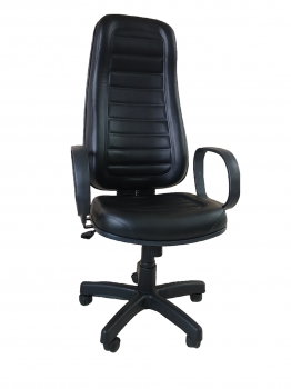 Silla Modelo Ejecutiva, giratoria reclinable, con regulaje de altura con mecanismo a gas, Linea Diviflex tapizado en tela u cuerina, con costura, espuma inyectada Dens. 45, con apoya brazo inyectado en poliuretano de color negro.