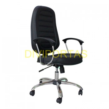 Silla Modelo Presidente, giratoria reclinable, con regulaje de altura con mecanismo a gas, base cromada, Linea Diviflex tapizado en tela u cuerina, con costura, espuma inyectada Dens. 45, con apoya brazo cromado con apoyo inyectado en poliuretano de color negro.