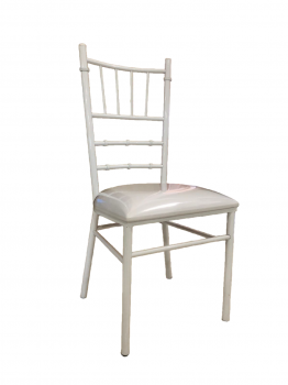 Silla Modelo Tiffany, silla fija 4 patas, con respaldo metálico y asiento acolchonado en cuerina o tela y capa protector de PVC transparente. Colores de Base: