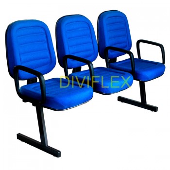 Silla longarina, modelo director para espera, con 03 lugares, Linea Diviflex tapizado en tela u cuerina, con costura, espuma inyectadaDens 45, con apoya brazo inyectado en poliuretano de color negro, base confeccionada en caño de 30x50 x 1,20 pintado con pintura epoxi.
