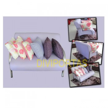 Poltrona Caacupe dos lugares, en tela Sued con espuma soft con pata cromada doble caño.