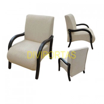 Poltrona Caacupe, en tela Sued con espuma soft con pata de madera.
